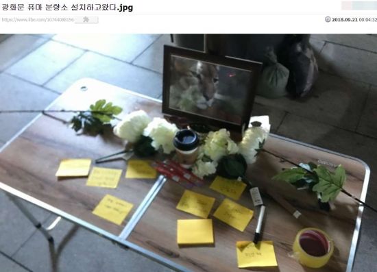 イルベ民がピューマ追悼のために光化門前に設置した焼香台が強制撤去