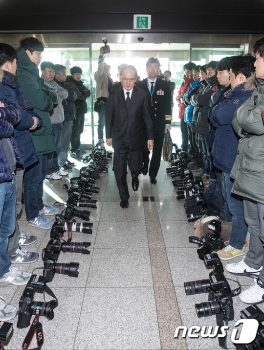 日韓GSOMIA締結のため韓国国防省に入る長嶺駐韓大使に対して、抗議の意を撮影拒否で示した韓国のマスコミ。