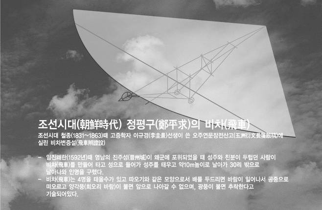 朝鮮時代に空飛ぶ車があったという話はでたらめな物ではない。根拠となる歴史記録が多い。 シン・ギョンジュン(申景濬、1712~1781)の<旅菴全書>には「星州と親しいある人が飛車を作って省中に飛んで入って城主を乗せて30里を飛んで日本の刃から避けることができた」と書かれている。