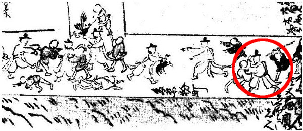 그림에는 날뛰는 말을 使節은 붙잡는 모습도 그려지고 있어서 下行所로부터 도망친 닭을 使節이 잡으려고 했다는 견해도 나올 수 있다고 한다.>>87