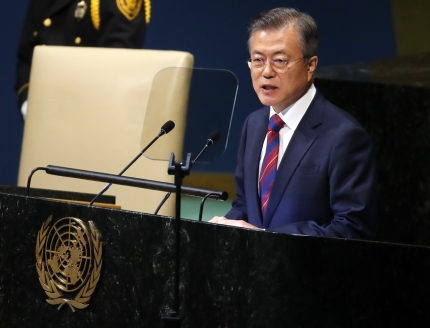 文大統領は26日(現地時間)、米ニューヨークの国連本部で行われた国連総会で演説を行い、「韓国は日本軍の慰安婦被害を直接経験した」とし、「国際社会の女性、平和、安保の議論に直接参加し、紛争地域の性暴力を撤廃するため国際社会と共に努力していく」と述べた。