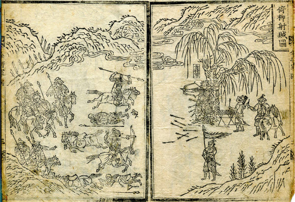 應河獨依大樹, 以三大弓迭射, 應弦穿札, 死者甚衆。 賊不敢逼, 乃從後剌之, 鐵搶洞胸, 猶執弓不釋, 虜人亦皆嘆惜, 相謂曰: ‘若有如此數人, 實難抵當。’ 稱之曰‘依柳將’。韓国の英雄 イ・ジョンウク博士