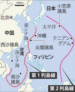 東アジアの地図を中国側から見るとよく分かる通り、中国艦隊が太平洋に自由に出入りするためには