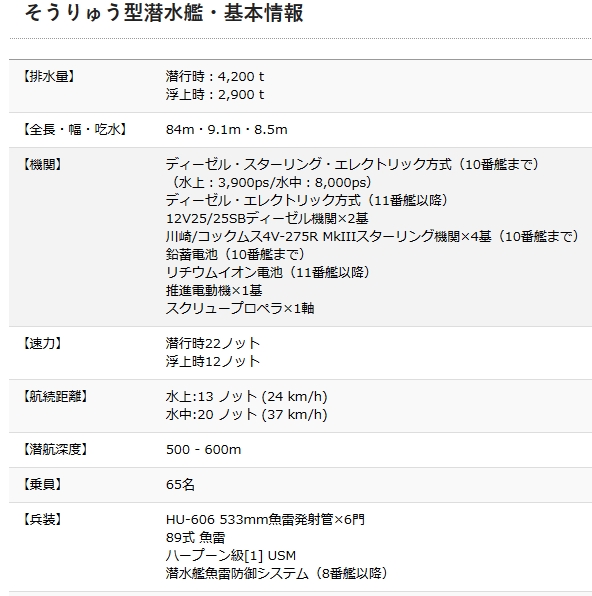 そうりゅう型の水中速力が20ノットだなんて話、信じている軍事版関係者はいないよ。