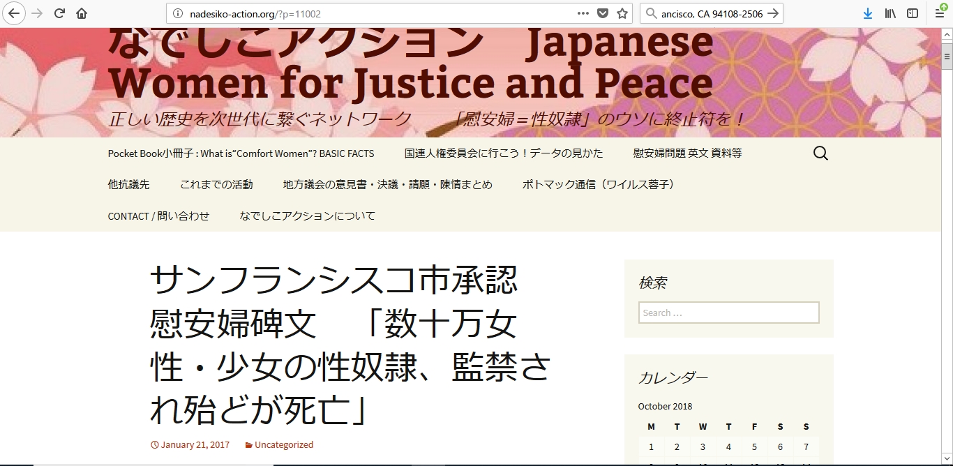 アメリカ・サンフランシスコ市で、2017年11月、市民団体が市に寄贈した「慰安婦像」と「碑文」を、市側が正式に受け入れることになりました。