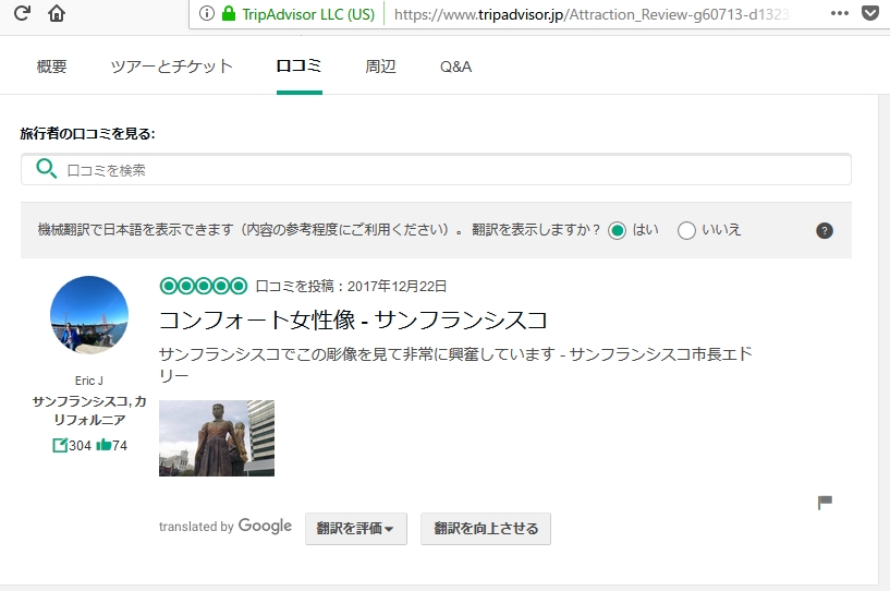 https://www.huffingtonpost.jp/2018/10/04/comfortwomen-statue_a_23551579/今のサンフランシスコなんか3割近く中国人だぞ。しかも、馬鹿チョン国の宗主国だからアメリカに居ようが中国人だ。前の死んだ市長も中国人票だけで当選してる。今の市長も前の市長のお抱えだろ?なら、中国人の金と票で今の地位に居るんだから断交で正解。