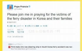 「韓国国民がこのセウォル号の悲劇を道徳的(倫理的)、霊的(精神的)に生まれ変わるための機会としてとらえることを望む」ローマ法王