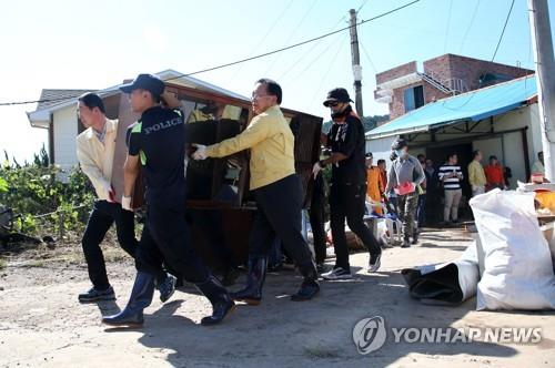 村には、盈徳郡と軍隊、警察、海洋警察、消防関係者は朝から出て濡れたものを片付けのに忙しかった。一時大人首まで水が溜まり、ほとんど家財道具が書き込むことができないほどだ。