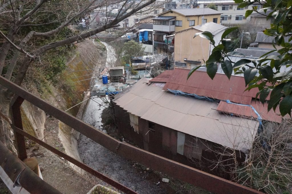 今では外国人に人気の観光地の京都だが今の形になるには戦後の長い努力があった。第二次世界大戦で戦火を免れた京都だがあちこちに在日が住み着き問題を起こした。街中の不法占拠が難しかった為辺縁部に定着した。今でも京都人が「下の人」と言う場合は京都駅より南を指し、人外の住処という暗喩を意味するのだが、これは身分の低い町人が住んでいた場所というだけでなく朝鮮人部落の意味もある。特に鴨川の川べりにバラック小屋を建てた朝鮮人は京都市内でも暴力事件を多く起こした。在日が治外法権の様にふるまった結果鴨川は産業廃棄物の不法投棄所の様になり、京都市は在日を雇う形で京都駅以南の鴨川の保全、清掃を行わせた。これが解消するまでは護岸工事などの名目で在日部落を撤去するまで40年以上かかった。現在でも朝鮮人学校が周囲の公園を不法占拠し、強制排除されるなど記憶に新しい。難民であろうが在日であろうが理不尽な権利を主張し始めると際限なくエスカレートし滞在国の法を無視する振る舞いをするのは同じである。例えば京都府ウトロ地区においては不法入居状態の在日部落の土地を同じ在日が騙して土地を転売した。当然その後処理は在日同士で解決すべきであるが、結局京都市が新規に市営住宅を建設し引っ越しを勧めるなど京都市民の税金が投入される事態となっている。しかし未だに解決していない。この背景には京都が伝統的に共産党の影響力が大きく在日に厳しく法の適用を求めなかった為で、これを優遇や権利と恣意的に解釈した在日が不法行為を加速させた。写真の地区も住宅地では無いためインフラの施設は許可されないにも関わらず勝手にガス、水道を引き、不法占拠だけでなく権利が無いのに他者に貸し出して家賃を徴収したりしている。