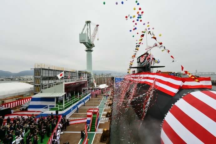 そうりゅう型最新鋭潜水艦「おうりゅう」進水 初のリチウムイオン電池搭載
