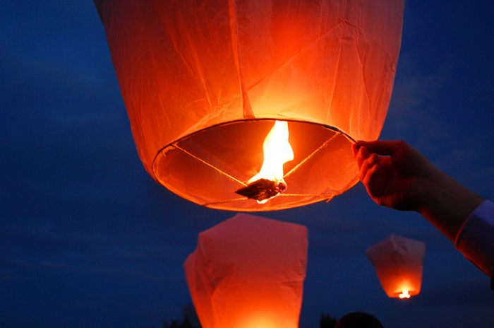 風などはなどの中に固体燃料に火をつけて熱い空気を利用して空に飛ばす小型熱気球だ。