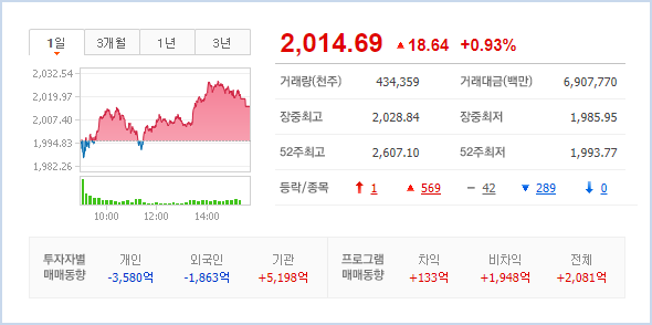 嬉しいわ帰ってきてKOSPI見たらがんばって死守してるね。