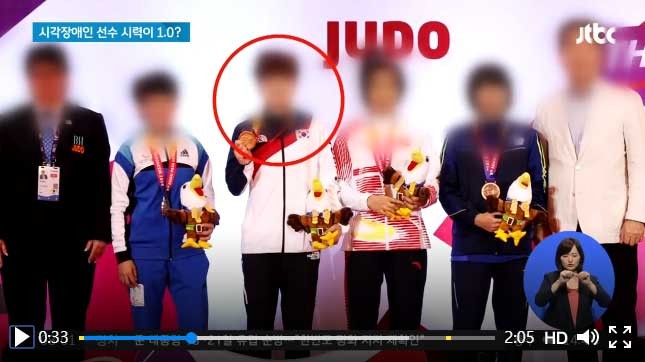 [チョン・ギシク/大韓障碍者柔道協会事務局長:(二選手は)障碍者ではありません。今間違っていると思います。視覚、視力が問題がある者とされている(障碍者ではありません。)]