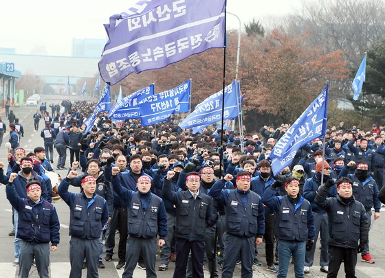労使間の不信は現代車グループも同じだ。民主労総の現代・起亜車非正規職支会(非正規職支会)は先月20日から7日までソウル地方雇用労働庁を占拠して断食した。現代車が正規職労働組合でなく非正規職支会と直接交渉するよう政府が圧力を加えてほしいと要求しながらだ。