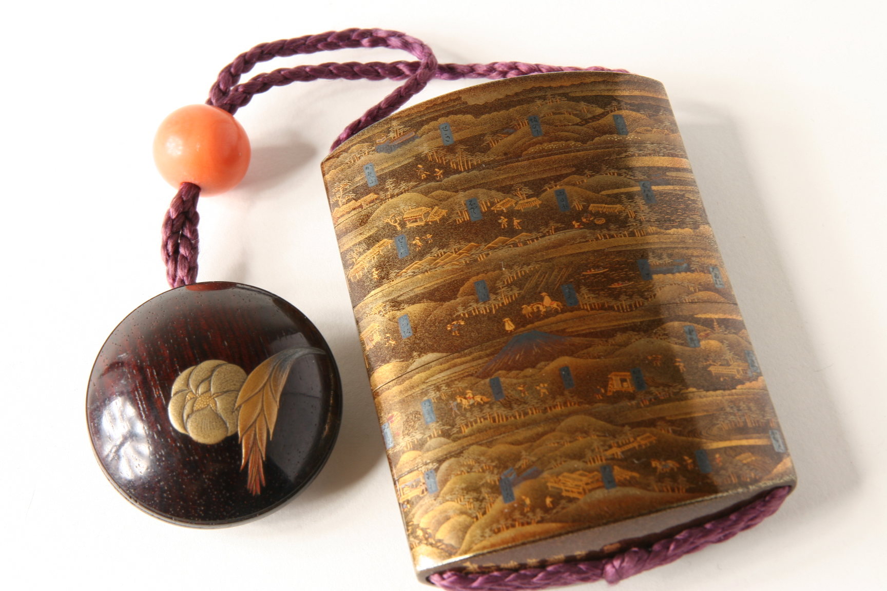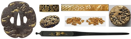 一番右の円形のものは、おそらく印籠の根付けだと思います。刀の拵えに揃えて作らせたのでしょう。
