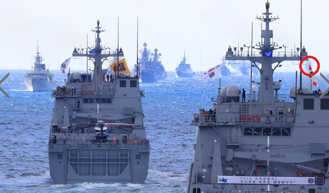 李旗を掲げた文在寅将軍丸が日の丸を従えて進軍