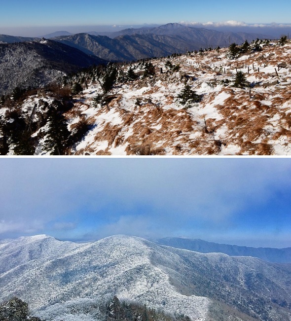 朝鮮半島(韓国領土内)で一番高い山、智異山(チリサン)の最高峰、天王峰(1915m)付近の「一面の雪景色」。