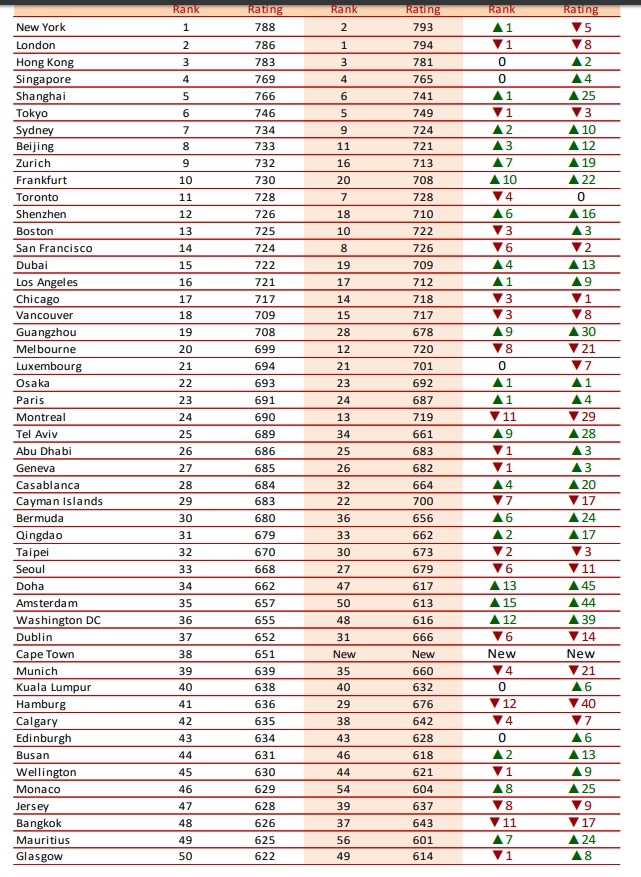 「Global Financial Centres Index(GFCI)」は2520人の金融産業関係者から収集された2万4495件にもおよぶ評価に基づき、86の金融主要都市を順位付けしたものだ。105項目の質問を通し、「事業環境」「金融セクター開発」「インフラストラクチャー要素」「人材」「信頼および一般要素」の観点から、各都市の国際的な競争力を測定している。>>1