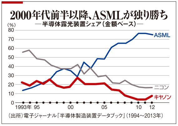 現在は、オランダASML社が圧倒的シェアを持つ。