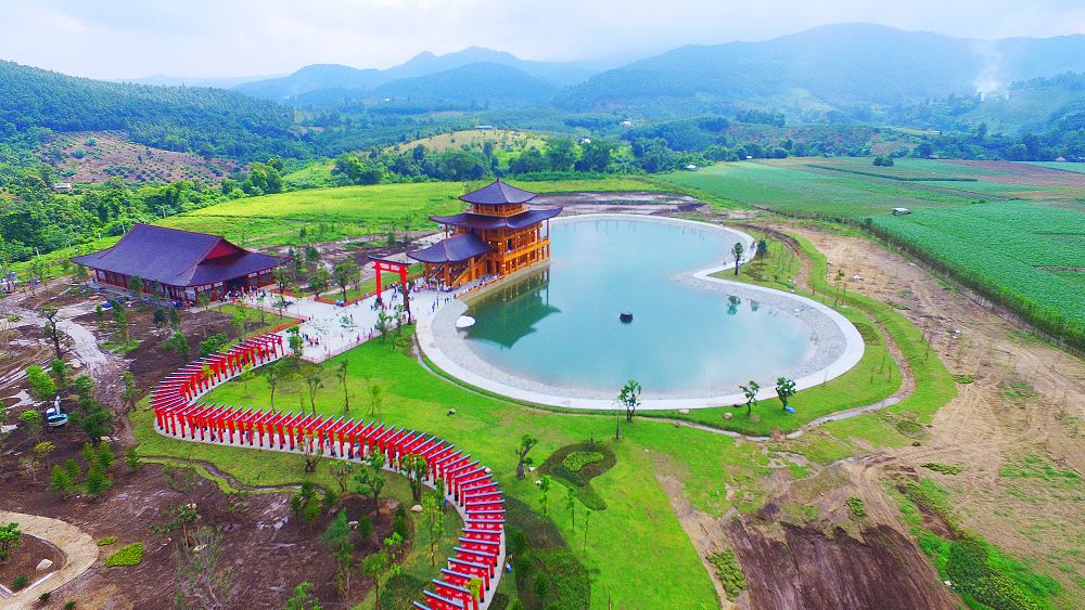 「Hinoki land」は、チェンマイから北に120kmのチャイプラーカーン郡に約7億円で建設された、チェンマイの新観光スポット。金閣寺や伏見稲荷の鳥居などがユル~ク再現されている。