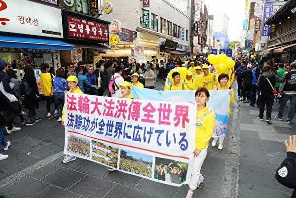 法輪功学習者らは10月13日、韓国ソウル特別市中心街で大規模なパレードを行った。地元韓国と日本、台湾、ベトナム、香港、タイ、マレーシアなど10カ国・地域から約2000人の法輪功学習者が集まり、現在進行中の法輪功弾圧の中止を呼びかけた。
