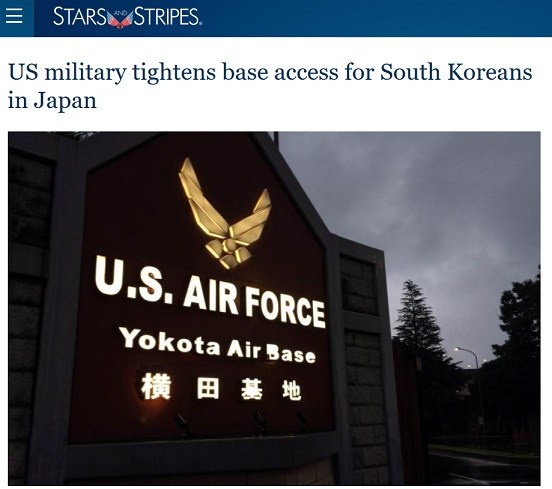 米軍準機関紙「スターズ・アンド・ストライプス」は15日、在日米軍が日本国内の米軍基地を訪れる韓国人に対して事前審査を義務づける新指針を導入したと伝えた。