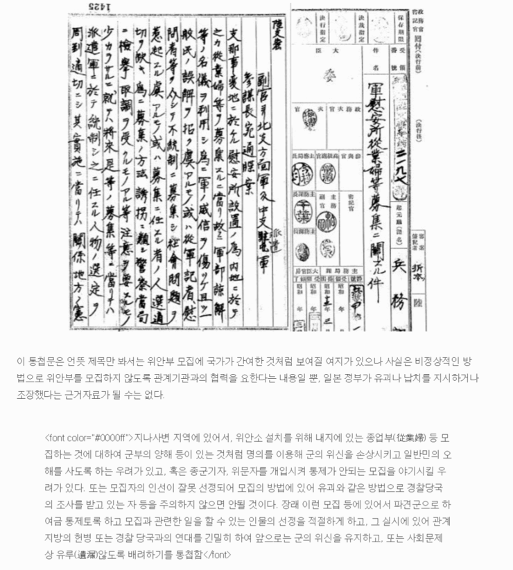 즉 이 공문은 일본 군부가 민간업자를 이용해 자국의 여성조차 위안부로 끌고 가니까 내무성이 그 사실을 알고 "본토 대상"으로만 보낸 공문일 뿐...외지였던 조선의 위안부 강제동원 문제에는 전혀 신경쓰지 않았다.>>32