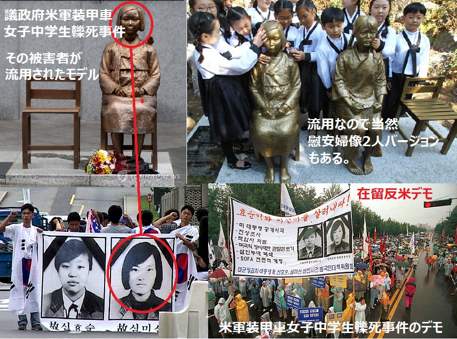 ・反米親北のキム・ウンソン&キム・ソギョン彫刻家夫妻が「二人の女子中学生の像」を制作し、現場に設置する運動が高まる。