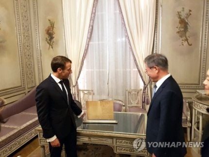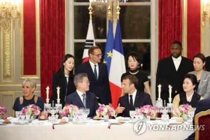 프랑스를 국빈방문 중인 문재인 대통령이 15일(현지시각) 에마뉘엘 마크롱 대통령 주최로 대통령궁인 엘리제궁에서 열린 한·프랑스 정상 만찬에서 프랑스 측이 보여준 환대에 대해 한 말이다.