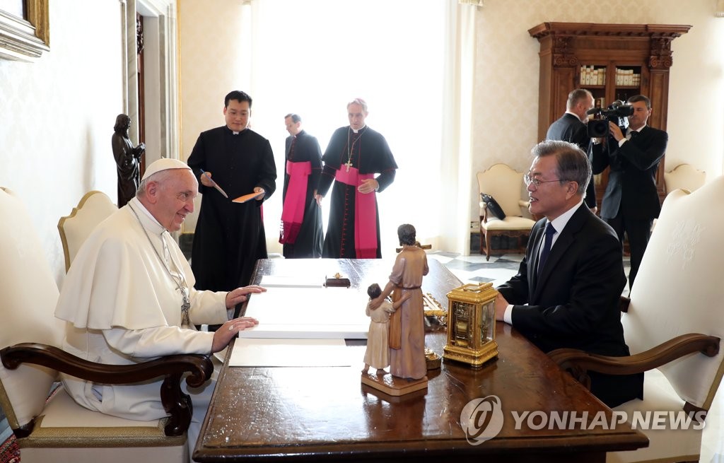 一方、教皇は、この日の文大統領から金正恩北朝鮮国務委員長の教皇の訪朝要請意志と一緒に金委員長が招待状を送ってもいいのかという質問に、「文大統領が伝えた言葉でも十分ですが、公式招待状を送ってくれれば良いだろう」とし、このように明らかにしたユンヨウンチャン青瓦台国民疎通首席が伝えた。