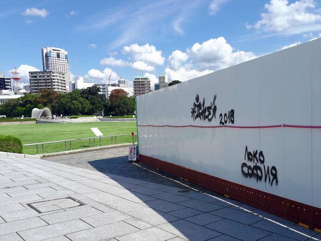 今月15日、広島市中区の平和公園では、原爆ドーム近くの石のベンチと、耐震補強工事中の原爆資料館本館の周囲に設置されたフェンスなど3か所に、黒いスプレーのようなもので落書きされているのが見つかりました。