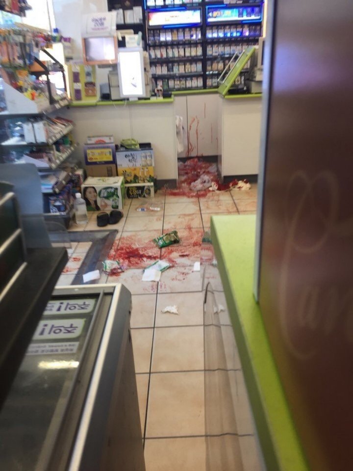 女子大学生が広場で口喧嘩の果てにコンビニに入って凶器で自分の手首を切ったとします。