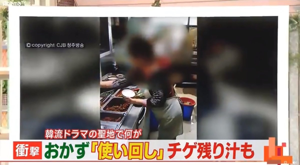 韓国人全てがこの飲食店の再利用を承知していて、韓国人全てが暗黙のうちに容認しているというこの現実。日本ならあり得ない。仮にそんな事が発覚したら、たちまち噂が広まりあっという間にその店は淘汰される。