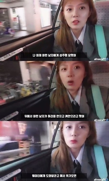 公開された映像の中で、カン・ウンビは「私は昨日、ある男性から痴漢行為を受けた。放送を終えて宿舎に行こうとしているところ、後ろからある男性が腰を触りながら抱きつこうとした」と明らかにした。