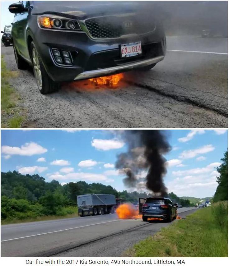 Car fire with the 2017 Kia Sorento, 495 Northbound, Littleton, MA