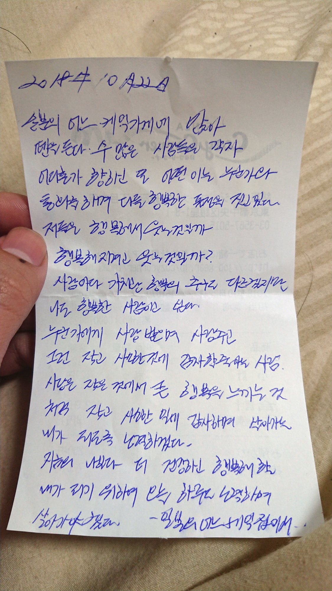 글씨체, 내용을 보면 저것을 쓴 사람은 50대 중년 남성으로 추정...