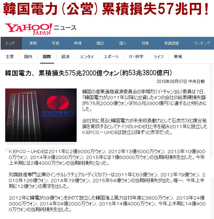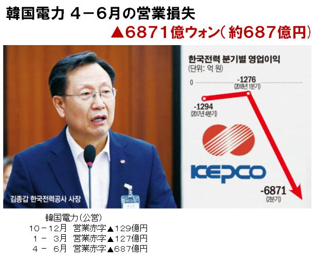 韓国は良いサンプルだね。韓国電力、4-6月期の営業損失が6871億ウォン(約687億円)