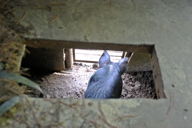 豚小屋の上に便所を作り、人糞で豚を飼育する。
