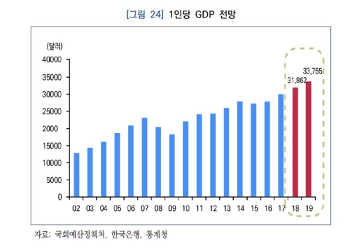 国会予算政策処は25日、「2019年と中期経済見通し」報告書で、「今年の1人当たりのGDPは前年比7%前後増の3万1千862ドルを記録する見通しだ」と明らかにした。