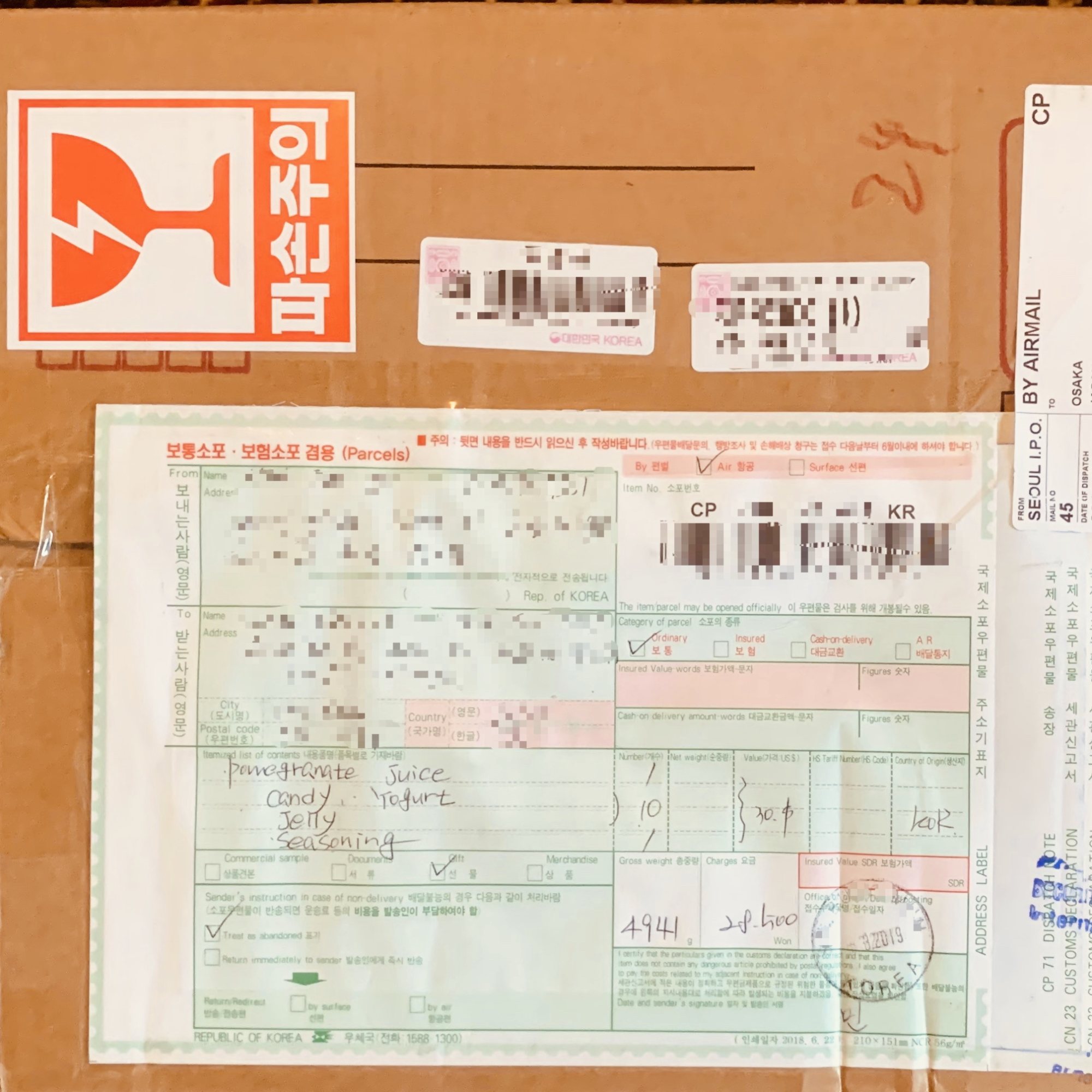 とりあえず、カイカイで知り合った韓国の青年からプレゼントが送られてきたよ。