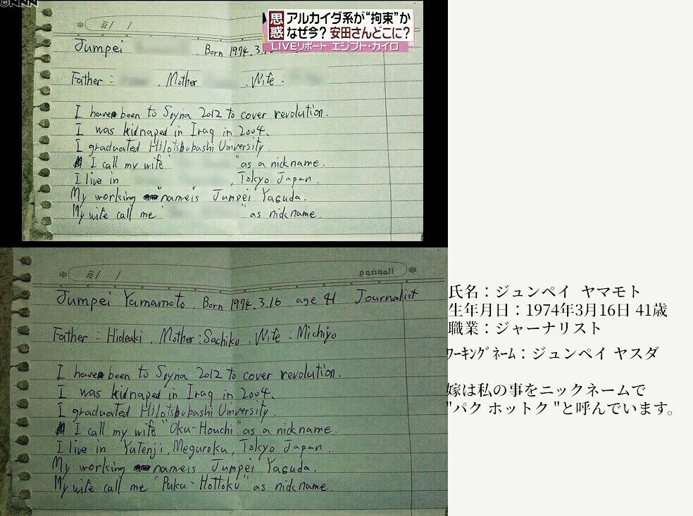 今までのイスラム原理主義者拉致殺害被害者を見ると、全員身ぎれいにしているのが判ると思うヌスラ戦線に顔が利くと称するジャーナリストが、ヌスラ戦線と交渉していると言ってなかったっけ?