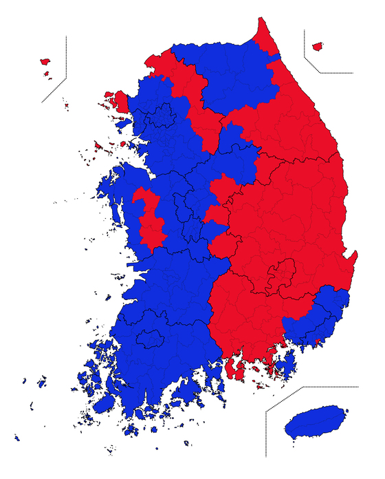 저의 경우 동남쪽 붉은 지역인 경상도에 거주하고 있으므로 다소 편향적일 수 있습니다.