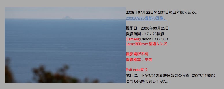 おまけに他の文献によると樹木や浜が見えたと書いてあるけど、そっちは完全無視韓国毎日新聞の写真がこれ