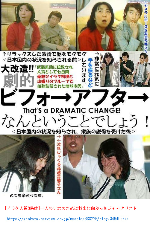 「イラク日本人人質事件」(イラク三馬鹿事件)の後追いをして、イラクの武装勢力に3日間だけ拘束された地味な事件で、安田純平と一緒に拘束された渡辺修孝も、反日エセ右翼「一水会」の元メンバーで、超反日組織【米兵・自衛官人権ホットライン】(共同代表:いいだもも、小田実、瀬戸内寂聴、小西誠など)の在イラク駐在員だった。