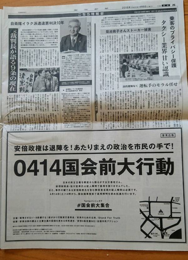 集会成功と新聞広告のためのカンパを募っています。