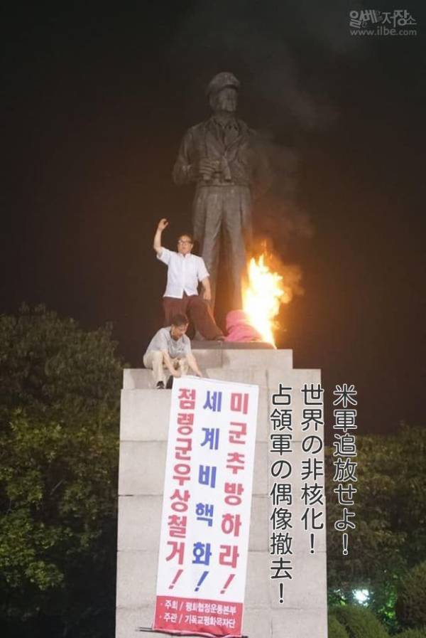 正→マッカーサー像に放火する団体の要求は以下。