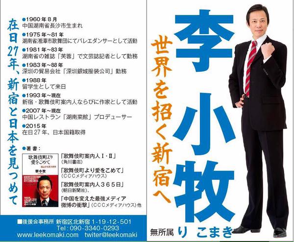 新宿区議選 李小牧 1018票で落選(1440票とれば当選だった)