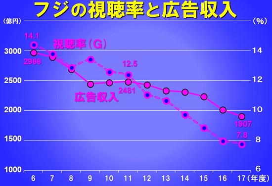 いままで頑張ってきたフジの人たちは無用の長物とされて、くだらない時代遅れのような日本の80年代の焼き直しの韓国ドラマを一生懸命放映する。ニダ