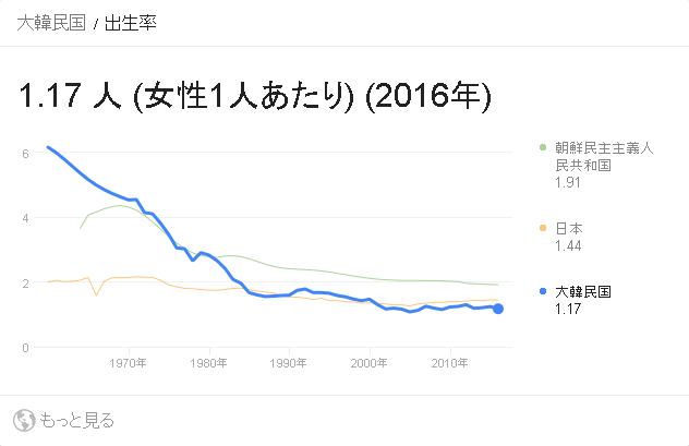 韓国は食糧難で人口が減少しているわけでは無いからね