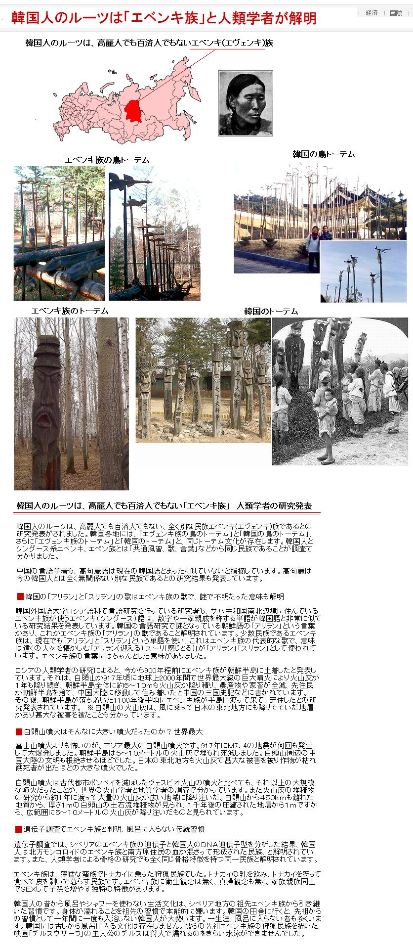 本来の韓民族は、韓半島の一部と中国東北部にいたエベンキ族を指すはずなんだ